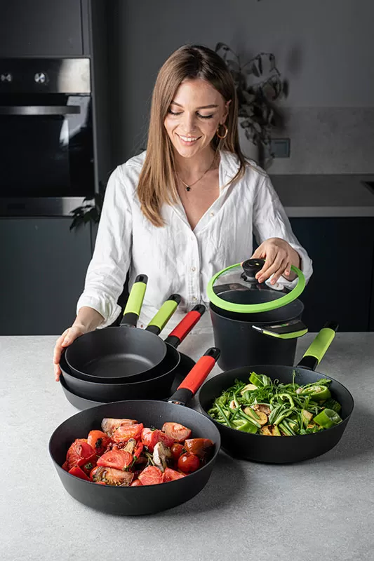 Кастрюли SQUALITY® - Кастрюли предназначены в основном для тушения продуктов. Со своим покрытием BIOTAN® в них получаются такие блюда как таджин, ризотто, паштеты и овощи, которые никогда не пригорают. Крышки, снабженные постоянной аэрацией, позволяют готовить без выкипания и экономить электроэнергию.